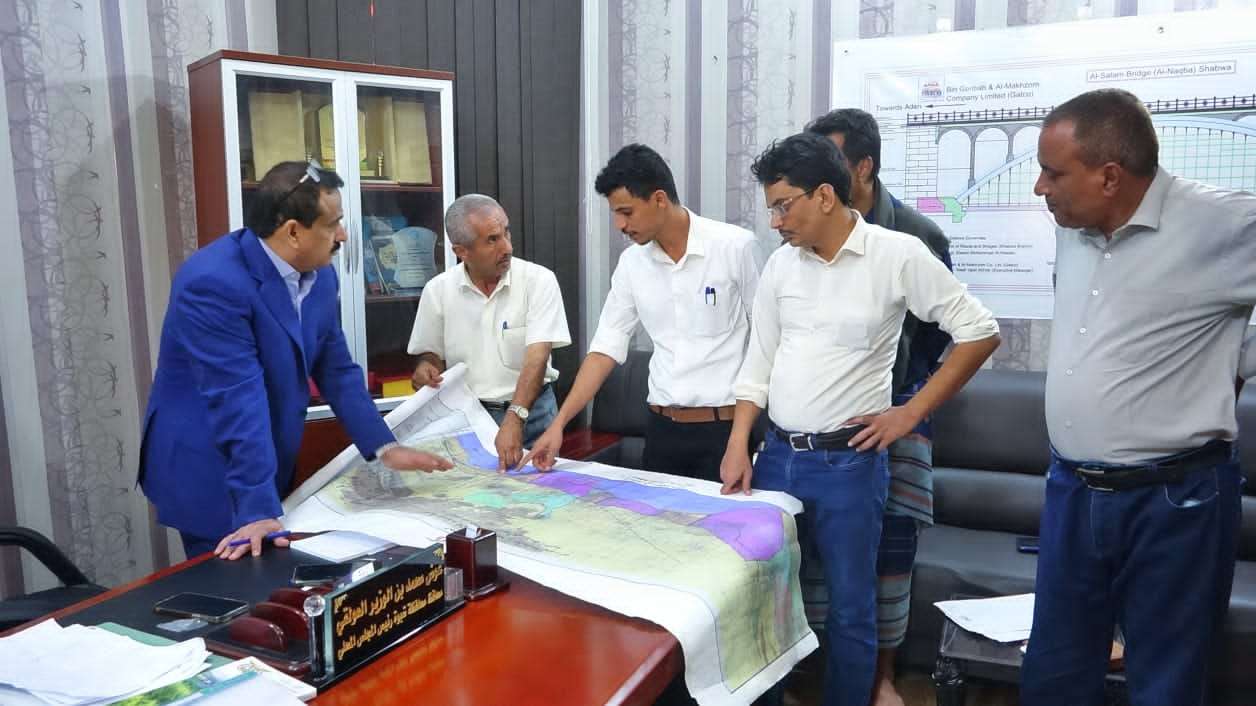 لدى لقائه بالمهندسين..محافظ شبوة يطلع على سير العمل في إعداد مخططات عمرانية بمديرية رضوم.