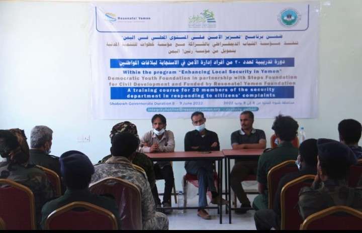 مؤسسة الشباب الديمقراطي فرع شبوة تدشن دورة تدريبية في الاستجابة لبلاغات المواطن.