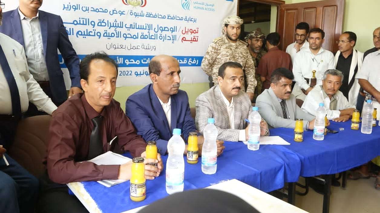 محافظ شبوة يدشن ورشة عمل خاصة برفع مهارات معلمات محو الأمية.