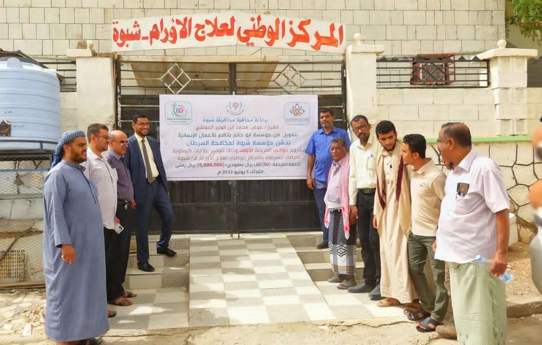 مؤسسة شبوة لمكافحة السرطان تدشن المرحلة الأولى من مشروع دوائي بالمركز الوطني لعلاج الأورام.