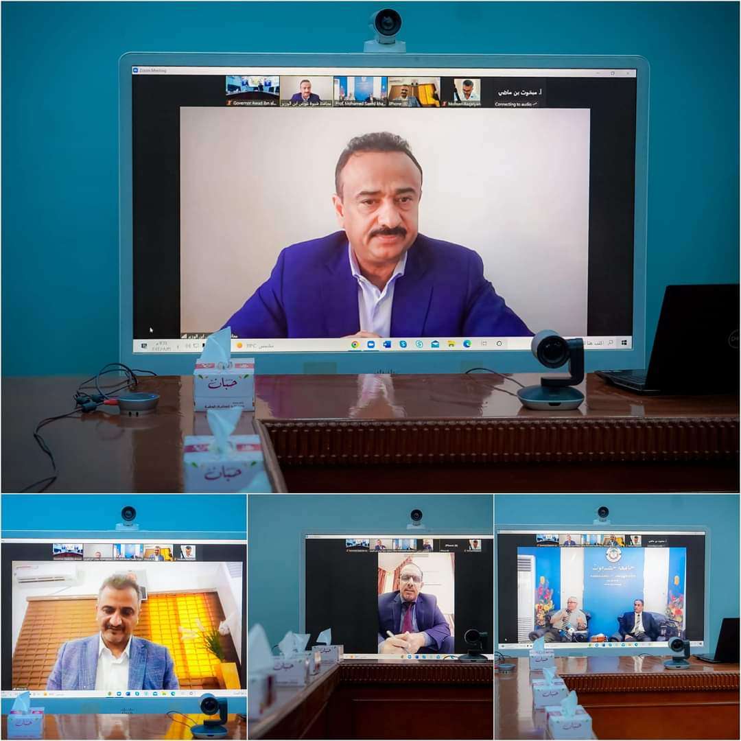 المحافظ بن الوزير يجتمع عبر تطبيق زوم بمحافظي محافظات (عدن - حضرموت) ورئيس جامعة حضرموت بشأن الإعلان عن المنح المقدمة من دولة الإمارات