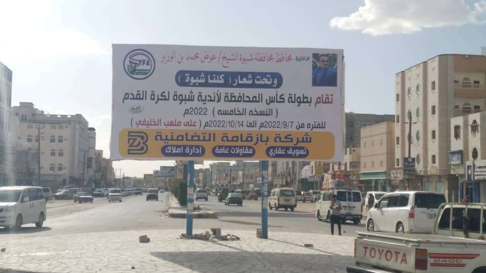 شبوة تتزين لانطلاق النسخة الخامسة من بطولة كأس المحافظة للأندية لكرة القدم لعام 2022م.