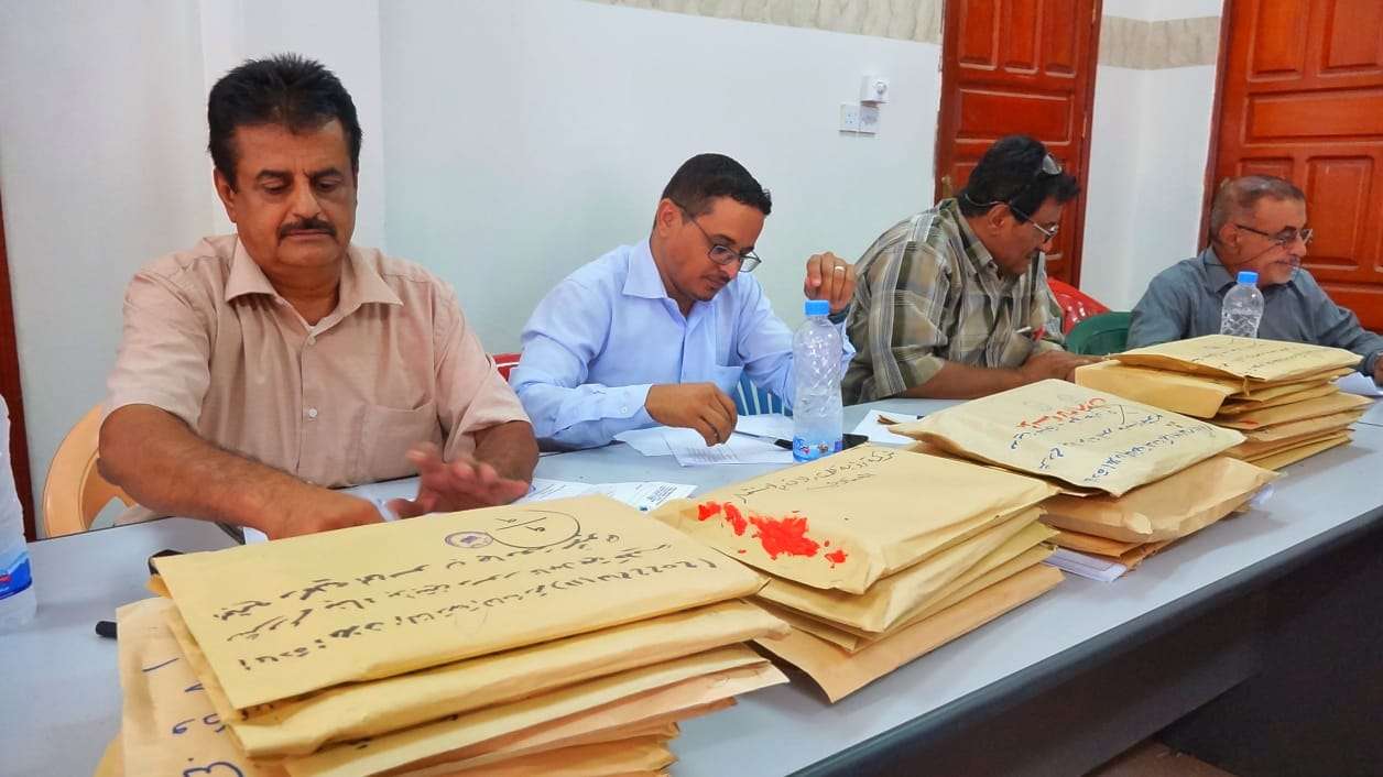 لجنة فتح المظاريف بشبوة تستعرض العطاءات المقدمة لتنفيذ أربعة مشروعات تعليمية وأمنية.