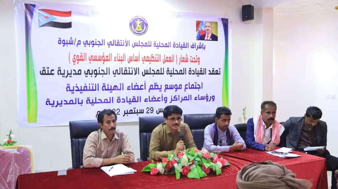 قيادة انتقالي عتق تعقد اجتماعا موسعا لأعضاء القيادة المحلية ورؤساء المراكز بالمديرية