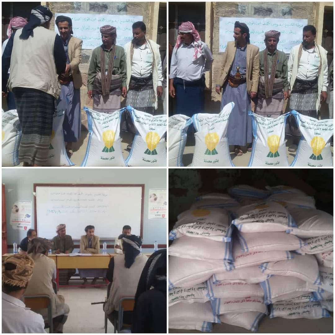 مدير عام الصعيد يدشن توزيع بذور قمح محسنة للمزارعين في المديرية.