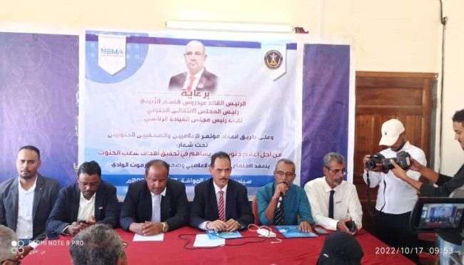 ولفت الى أن قيادة المجلس الانتقالي بوادي وصحراء حضرموت حريصة كل الحرص على تشكيل ودعم هذا الكيان النقابي الحقوقي الجنوبي الذي سيكون له دورا مهما في توحيد جهود الصحفيين والإعلاميين وحماية مصالحهم.
