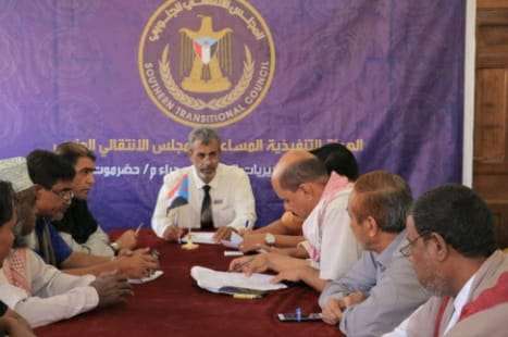 عقدت الهيئة التنفيذية للمجلس الانتقالي الجنوبي لشؤون مديريات وادي وصحراء حضرموت، اليوم الخميس، اجتماعها الدوري لشهر أكتوبر، برئاسة محمد محسن الكثيري مدير الإدارة التنظيمية. وناقش الاجتماع المحضر السابق وأقرت عدد من النقاط والتوصيات لمرحلة ما بعد التصعيد الشعبي المنفذ في مديريات وادي حضرموت. وطالبت الهيئة التنفيذية في اجتماعها، التحالف العربي ومجلس القيادة الرئاسي الاستجابة لصوت الشعب في وادي حضرموت المطالب بإخراج قوات المنطقة العسكرية الأولى وفقا للشق العسكري لاتفاقية ومشاورات الرياض. وأشادت الهيئة التنفيذية بالحشد الجماهيري في مليونية الخلاص يوم الـ ١٤ أكتوبر بمدينة سيئون والمطالب بخروج المنطقة العسكرية الأولى وإحلال قوات النخبة الحضرمية بدلا عنها، وتجنيد ٢٥ ألف مجند من أبناء الوادي.