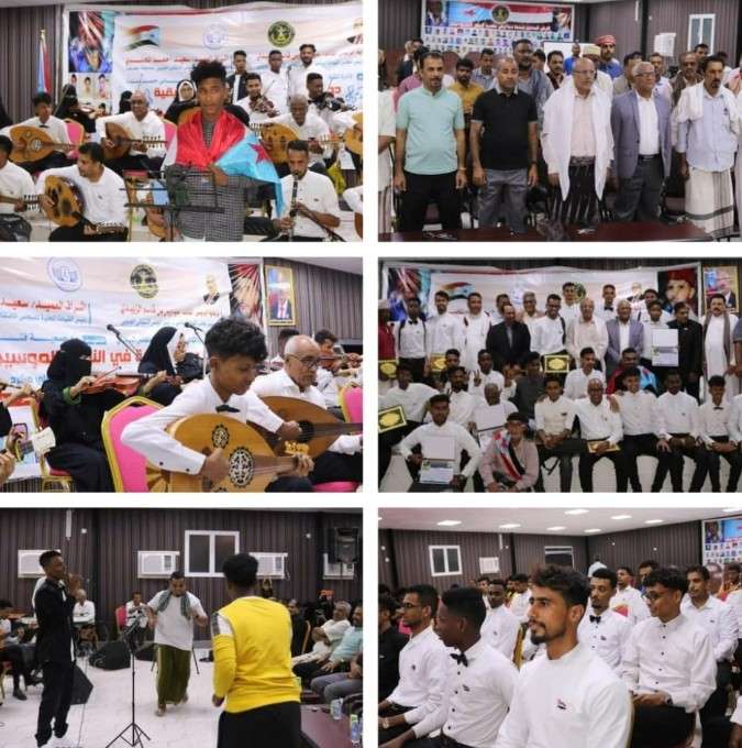 نظمت الإدارة الثقافية بالهيئة التنفيذية للمجلس الانتقالي الجنوبي بمحافظة حضرموت، ليلة أمس الثلاثاء، أمسية احتفالية فنية وتكريمية، احتفاء باختتام الدورة التدريبية الفنية في النوتة الموسيقية، التي نظمتها الإدارة، برعاية كريمة من الرئيس القائد عيدروس قاسم الزبيدي، رئيس المجلس، ونفذتها جمعية فناني حضرموت. وأظهرت المقطوعات الموسيقية، والأغاني والأناشيد الوطنية، التي أداها المتدربون خلال الحفل، مدى استفادتهم من الدورة، التي استمرت شهرا كاملا، وشارك فيها نحو 50 متدربا، تلقوا على يد المدرب الفنان عبد العزيز مكرد، أبجديات النوتة، ومهارات العزف على الآلات الموسيقية.. وفي الحفل، الذي حضره الأستاذ علي عبدالله الكثيري، عضو هيئة رئاسة المجلس، رئيس الهيئة الوطنية للإعلام الجنوبي، المتحدث الرسمي باسم المجلس، ألقى العميد الركن سعيد أحمد المحمدي رئيس الهيئة التنفيذية للمجلس بالمحافظة، كلمة، نقل فيها للحاضرين، تحيات الرئيس القائد عيدروس بن قاسم الزبيدي.. مجددا التأكيد على اهتمام المجلس وهيئته التنفيذية بحضرموت، بالموسيقى والفنون كافة، لما لهذه الفنون من أهمية تربوية وصحية، وفي تزكية النفس وتهذيبها، ورفع المعنويات.. وأشاد المحمدي بجهود الإدارة الثقافية وجمعية فناني حضرموت، والمدرب عبد العزيز مكرد ، في نجاح هذه الدورة الفنية الجميلة.. مبديا استعداد الهيئة في تنفيذ المزيد من الدورات الموسيقية وفي مختلف الفنون، لأحياء تراث حضرموت والمحافظة على سمعتها ومكانتها الفنية. وعبر مدير الإدارة الثقافية بالهيئة، الشاعر عبدالله سعيد باوزير ، عن سعادته بنجاح هذه الدورة، مهنئا المشاركين فيها على المهارات الموسيقية التي اكتسبوها.. معددا النشاطات الفنية والثقافية التي نفذتها إدارته خلال العام الجاري.. مشيرا إلى أن الإدارة تحضر لتدشين دورة تدريبية في الفنون التشكيلية، ستنفذ خلال هذا الأسبوع. مؤكدا اهتمام المجلس الانتقالي بالمواهب الشابة في مختلف الفنون.. و أثنى المشرف الفني لجمعية الفنانين، الفنان أحمد عتعوت باوزير ، على قيادة انتقالي حضرموت، على اهتمامها بالموسيقى والفنون، واستجابتها لمبادرات الجمعية ودعمها المستمر لنشاطاتها. واختتم الحفل، بتكريم مدرب الدورة، والمشاركين فيها، والمساهمين في نجاحها، وعدد من الموسيقيين المشاركين في الأمسية. حضر الحفل كوكبة من فناني وموسيقيي حضرموت المعروفين، والشعراء الشعبيين، و ماهر بن صالح المدير العام لمكتب وزارة الثقافة، ومحمد أحمد العطاس مدير صندوق التراث والتنمية الثقافية، ورئيس نيابة استئناف حضرموت القاضي شاكر بنش، وعدد من أعضاء الجمعية الوطنية وجمهور غفير من المهتمين بالفن والموسيقى.