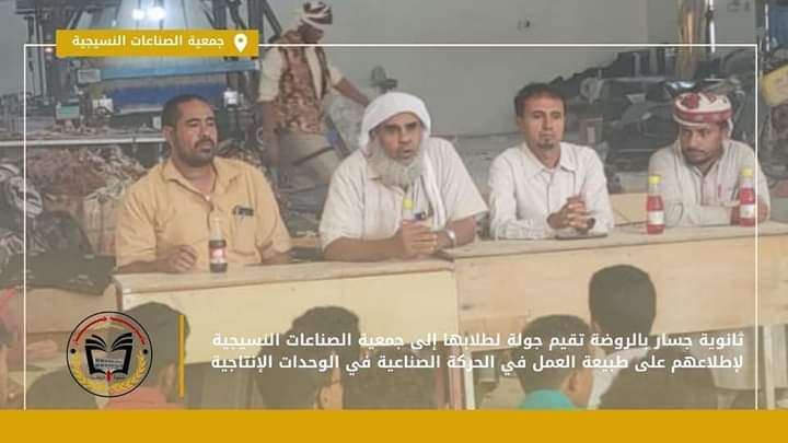 ثانوية جسار بالروضة تقيم جولة لطلابها إلى جمعية الصناعات النسيجية لإطلاعهم على طبيعة العمل للحركة الصناعية في الوحدات الإنتاجية