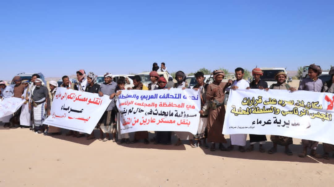 *وقفة احتجاجية لقبائل بلعبيد شبوة تطالب المحافظ والتحالف بإخراج القوات المتمردة من مناطقها* *