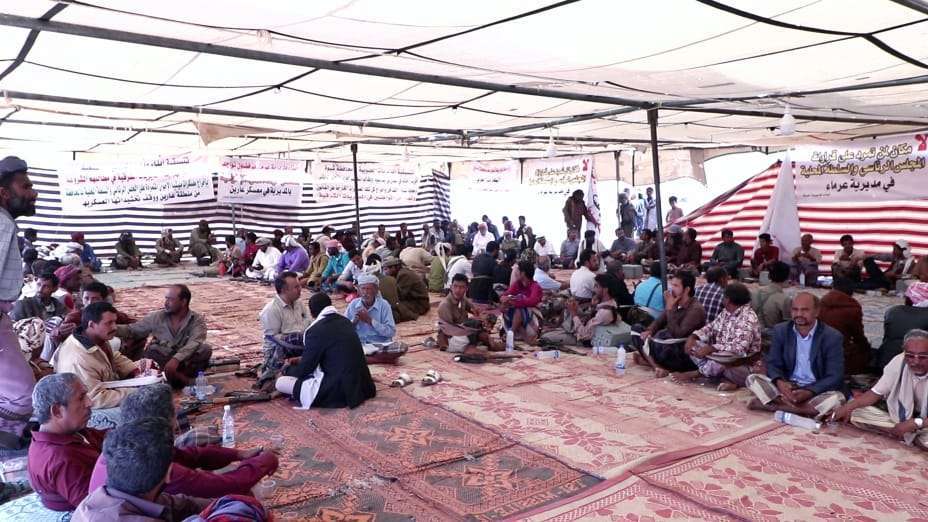 حشود المديريات الوسطى، عتق والصعيد ونصاب بشبوة تتوافد على مخيم الاعتصام بعرماء