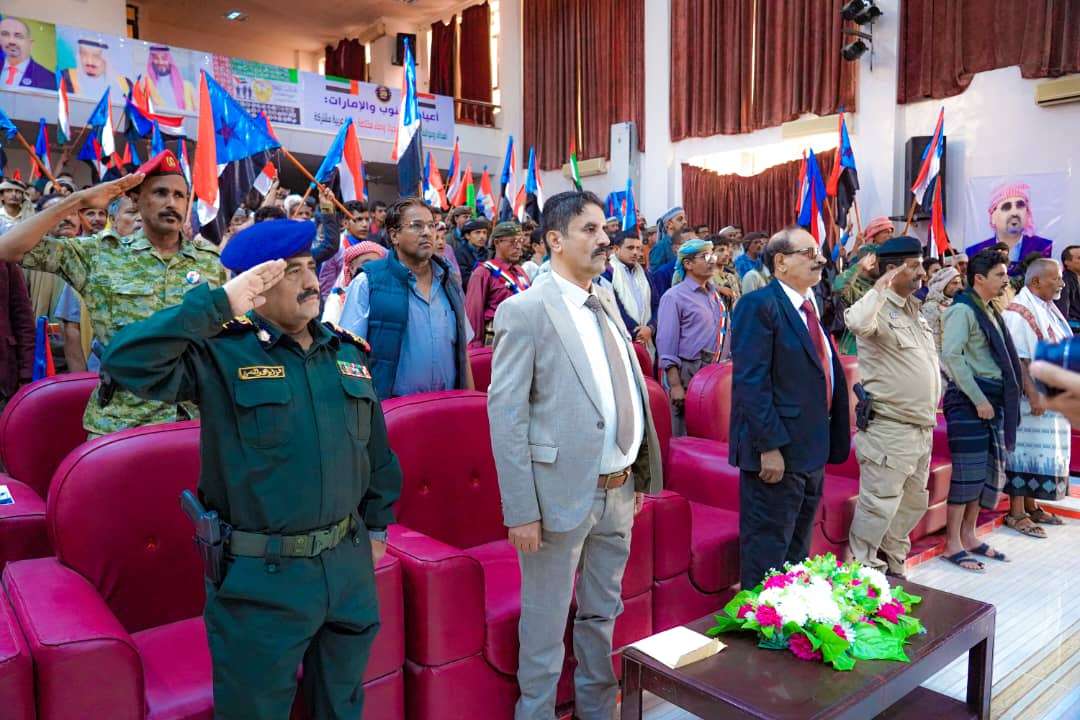 برعاية كريمة من الرئيس القائد عيدروس قاسم الزبيدي شهد مركز الشاعر الراحل يسلم بن علي الثقافي بمدينة عتق بمحافظة شبوة صباح اليوم الأربعاء الحفل الخطابي والفني الكبير الذي أقامته القيادة المحلية للمجلس الانتقالي بالمحافظة بمناسبة الذكرى ال55 للاستقلال الوطني الجنوبي والمتزامنة مع ذكرى يوم الشهيد الاماراتي 30نوفمبر والعيد 51 لليوم الوطني لدولة الإمارات. وافتتح الحفل الخطابي والفني الذي حضره رئيس الهيئة التنفيذية لانتقالي المحافظة العميد علي احمد الجبواني ونائبه عيدروس باعوضة ، ووكيل محافظة شبوة احمد صالح الدغاري، ومدير عام شرطة شبوة العميد فؤاد النسي، وقائد اللواء الثاني دفاع شبوة العقيد وجدي باعوم وعدد كبير من المسؤولين والشخصيات الاجتماعية والقبلية والقيادات العسكرية والامنية ، بآيات من الذكر الحكيم، أعقبها النشيد الوطني الجنوبي، وقراءة الفاتحة على أرواح شهداء الجنوب ودولة الإمارات العربية المتحدة الشقيقة . وألقى العميد علي احمد الجبواني رئيس القيادة المحلية للمجلس الانتقالي الجنوبي بمحافظة شبوة كلمة نقل في مستهلها تهاني وتحايا القيادة السياسية برئاسة الرئيس القائد عيدروس الزُبيدي رئيس المجلس الانتقالي، إلى أبناء شبوة، والشعب الجنوبي كافة بمناسبة الذكرى الـ 55 لعيد الاستقلال الوطني الـ 30 من نوفمبر المجيد ، مجددا العهد ""بالبقاء امناء على مبادئ ثورتنا ومحافظين على تضحيات شهداءنا وأهداف ومكتسبات نضال شعبنا العظيم حتى تحقيق الاستقلال الثاني واسترداد الجنوب وطنا وهوية وسيادة"". واضاف العميد الجبواني "" من محاسن اللحظة أن يتزامن ويتوافق احتفالنا اليوم بهذه الذكرى الجنوبية العربية مع ذكرى الثلاثون من نوفمبر ليوم الشهيد في دولة الإمارات العربية الشقيقة وعلى مقربة من الذكرى الواحدة والخمسون لعيدها الوطني، فإننا نثمن دور وتضحيات أولئك الرجال من اخواننا ابطال الجيش الاماراتي الذين ضحوا بأرواحهم ودماءهم الزكية في معركة التصدي للخطر الإيراني ومكافحة الإرهاب حتى امتزجت دماءهم مع دماء أبطال المقاومة الجنوبية الباسلة"". وأشاد رئيس القيادة المحلية للمجلس الانتقالي بالمحافظة بدور الأشقاء في التحالف العربي بقيادة المملكة العربية السعودية ودولة الإمارات العربية المتحدة على كل ما قدموه على الصعيد السياسي والعسكري والتنموي والإنساني، مؤكدا في ذات الوقت على أن بناء الدولة الجنوبية المستقلة تعني مزيدا من التكامل والتنسيق والتعايش مع الأشقاء في الإمارات العربية المتحدة وباقي دول الخليج والجزيرة والوطن العربي بأكمله . وفي الوقت الذي أدان العميد الجبواني العمليات الإرهابية الحوثية على المنشآت الاقتصادية في محافظتي شبوة وحضرموت ، أكد على وقوف قيادة المجلس الانتقالي مع السلطة المحلية بالمحافظة ممثلة بالاخ محافظ المحافظة الشيخ عوض بن الوزير من أجل السير بشبوة إلى مستقبل يسوده الأمن والتنمية والازدهار . كما ألقى وكيل محافظة شبوة الاخ احمد صالح الدغاري كلمة السلطة المحلية بالمحافظة نقل في مستهلها تحيات محافظ المحافظة الشيخ عوض بن الوزير إلى أبناء المحافظة بمناسبة ذكرى الاستقلال المجيد ، متطرقا إلى المآثر التي اجترحها ثوار ثورة 14 اكتوبر حتى تحقيق الاستقلال ، وداعيا والى الاستفادة من عبر ودروس الماضي . ومن جانبه أكد الشيخ لحمر علي لسود في كلمة الأعيان والشخصيات الاجتماعية على أهمية الاحتفال بذكرى الاستقلال كمناسبة وطنية عظيمة وخالدة في تاريخ شعبنا الجنوبي ، داعيا إلى رص الصفوف الشبوانية في وجه الأخطار التي تهدد المشروع الجنوبي في شبوة والجنوب . هذا وتخلل الحفل عدة فقرات فنية شملت قصيدة شعرية للشاعر الكبير سالم العبد قشور ، ورقصات تراثية قدمتها فرقة نصاب للرقص الشعبي ، واغاني وطنية وثورية غناها الفنان الجنوبي عوض بلخير.