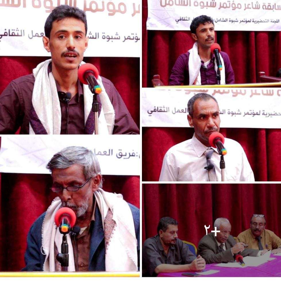ناصر القفان ينال المركز الاول في مسابقة شاعر مؤتمر شبوة الشامل وأنور بلكسر وصيفا وصابر الهفيش ثالثا وعبدربه الغسيلي رابعاً