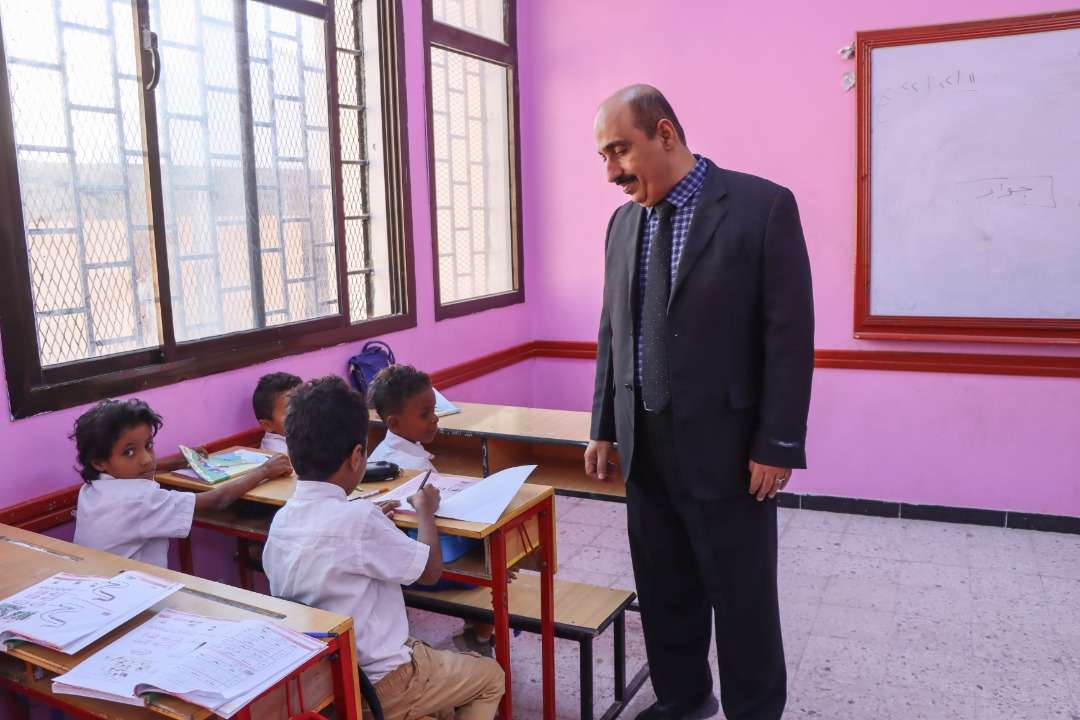 المدير باعباد يدشن العملية التربوية والتعليمية للفصل الدراسي الثاني في ثانوية المكلا النموذجية للبنين ومجمع ابن الهيثم التعليمي