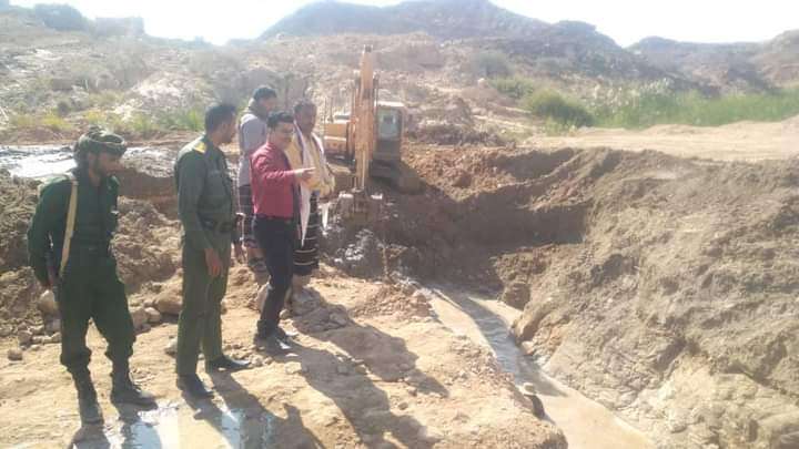 مدير عام الروضة ونائب مدير أمن الروضة يتفقدون العمل في موقع التسرب النفطي بمنطقة الغيل غرير