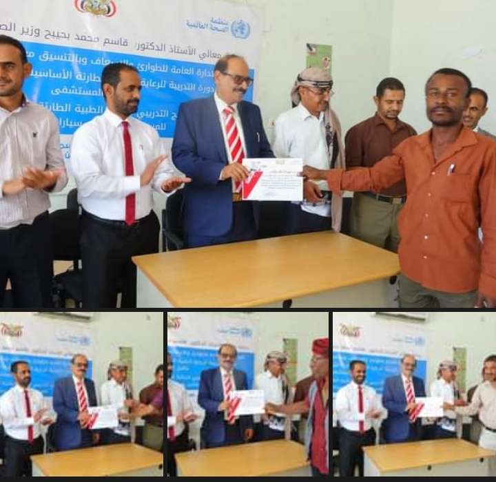 وكيل محافظة شبوة الدغاري يشيد بكفاءة إدارة العمليات الإسعافية أثناء تكريمهم من قبل مكتب الصحة.