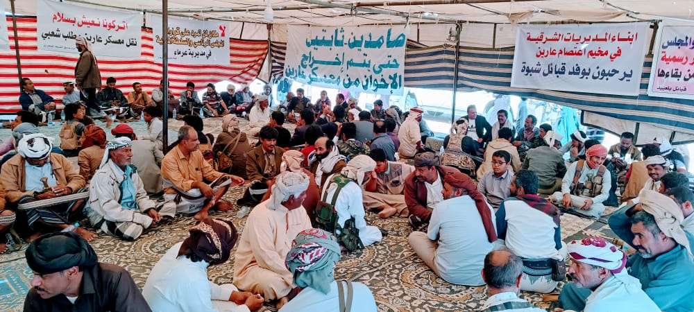 معتصمو عرماء بشبوة يمهلون 48 ساعة لطرد معسكرات الإخوان من عارين.