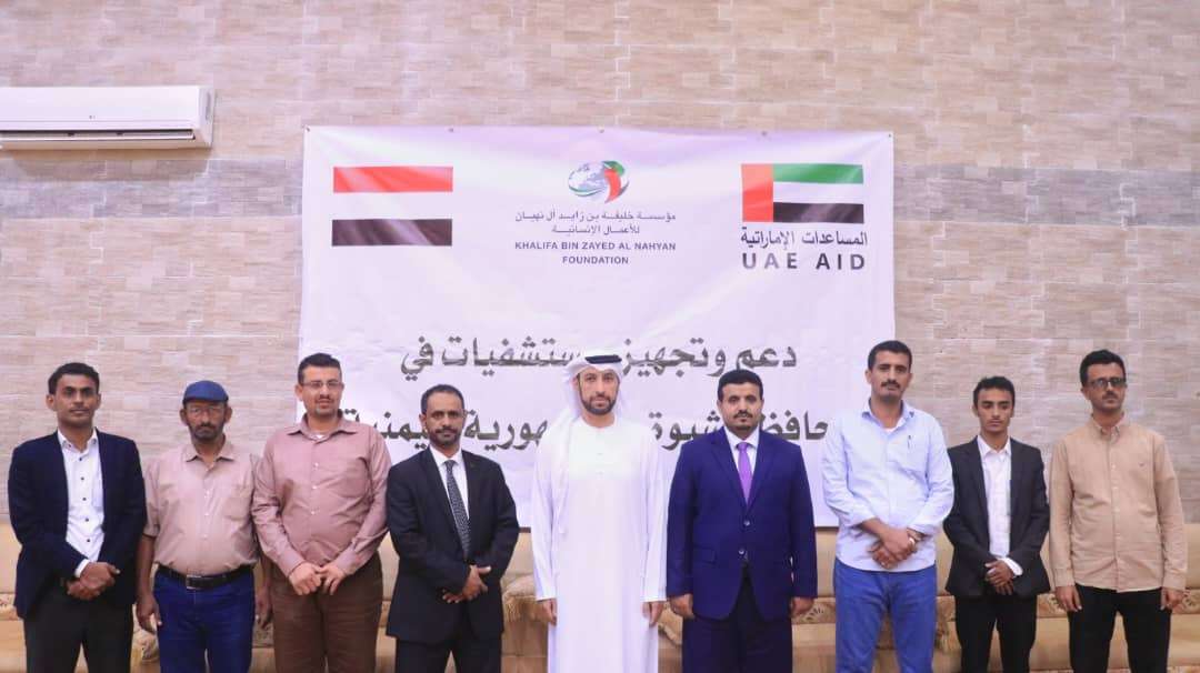 بتوجيهات من صاحب السمو الشيخ محمد بن زايد آل نهيان رئيس دولة الإمارات العربية المتحدة، ومتابعة سمو الشيخ منصور بن زايد آل نهيان نائب رئيس مجلس الوزراء وزير ديوان الرئاسة رئيس مؤسسة خليفة بن زايد ال نهيان للأعمال الإنسانية، جرى صباح اليوم الأربعاء في مدينة المكلا بمحافظة حضرموت توقيع إتفاقية لدعم مستشفيات محافظة شبوة. وبتكليف من الشيخ عوض محمد بن الوزير محافظ محافظة شبوة جرى التوقيع بحضور وكيل محافظة شبوة المساعد سالم شمح النسي، ومدير عام مكتب الصحة العامة والسكان محافظة شبوة د. علي ناصر الذئب وممثل مؤسسة خليفة بن زايد ال نهيان للأعمال الإنسانية ونص توقيع الإتفاقية التي تأتي في إطار تدخلات دعم المنظومة الصحية، إلى تجهيز وتأهيل مستشفيات محافظةشبوة، من ترميم وتجهيز بالمستلزمات الصحية، ورفدها بالكوادر والتخصصات الطبية لضمان سير عملها، وتوفير الرعاية الصحية للمواطنين. وسيبدأ العمل كمرحلة أولى في أربعة مستشفيات محورية تشكل أولوية، ثم أثنى عشر مستشفى من المستشفيات المحورية والريف كمرحلة ثانية في مختلف مديريات محافظة شبوة. ونقل وكيل محافظة شبوة المساعد سالم النسي، تحيات محافظ شبوة عوض إبن الوزير، مؤكدًا أن هذا التدخل والدعم المباشر للقطاع الصحي وإحتياجاته يعتبر حدثًا استثنائيًا في محافظة شبوة، شاكرًا الدعم والجهود التي تبذلها دولة الإمارات العربية المتحدة عبر ذراعها الإنساني مؤسسة خليفة بن زايد للأعمال الإنسانية. َوأشاد مدير عام مكتب الصحة العامة والسكان بمحافظة شبوة، د. علي ناصر الذئب بهذا التدخل النوعي، مؤكداً بأنه سيشكل نقلة في القطاع الصحي بالمحافظة، مؤكدًا في الوقت ذاته أنه سيكون سندًا لانجاح جهود مؤسسة خليفة بن زايد في التطوير والإرتقاء بمستوى الخدمات التي يقدمها القطاع الصحي. شارك في حفل التوقيع عدد من مدراء الأدارات والمختصين بمكتب الصحة العامة والسكان بمحافظة شبوة.