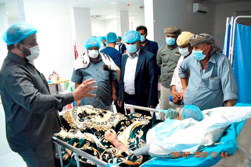 اطمئن وكيل محافظة حضرموت لشئون مديريات الوادي والصحراء الاستاذ / عامر سعيد العامري ، اليوم ، على صحة الشخصية القيادية والاجتماعية المدير العام لمديرية القطن وحريضة سابقا مستشار محافظ محافظة حضرموت لشئون التربية والتعليم ، الشيخ / مبروك بن سالم بن خميس بن سويدان الذي يرقد حاليا بقسم العناية المركزة بهيئة مستشفى سيئون العام . واستمع الوكيل العامري من قبل الطبيب المشرف على علاجه ومن ابنه الاستاذ / خالد مبروك بن سويدان عن صحة والده ، الذي تعرض لوعكة صحية مؤخرا , شاكرا الوكيل العامري على هذه اللفتة الكريمة للاطمئنان على صحة والده . وبدوره عبر الوكيل العامري عن تحمل السلطة المحلية بالوادي والصحراء بتحمل تكاليف علاجه ، داعيا العلي القدير ان يمنّ عليه بدوام الصحة والعافية . رافق الوكيل خلال زيارته الشيخ سالم بن شحبل مدير عام مديرية ثمود سابقا ونائب المدير العام لمكتب وزارة الصحة العامة والسكان لشئون المديريات الصحراوية / خالد عبدالله العامري .