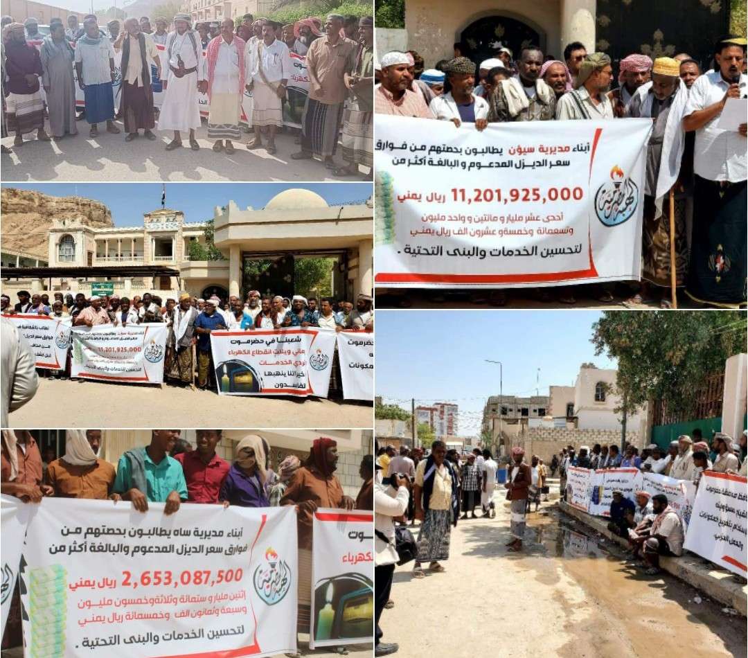 مشاهد للوقفات الاحتجاجية لأبناء حضرموت الرافضة لتواجد العسكرية الأولى وتدهور الخدمات وفساد السلطة.
