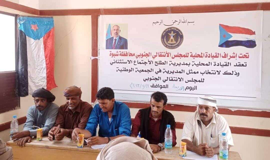 القيادة المحلية لانتقالي الطلح بشبوة تنتخب بالتزكية ممثل المديرية في الجمعية الوطنية