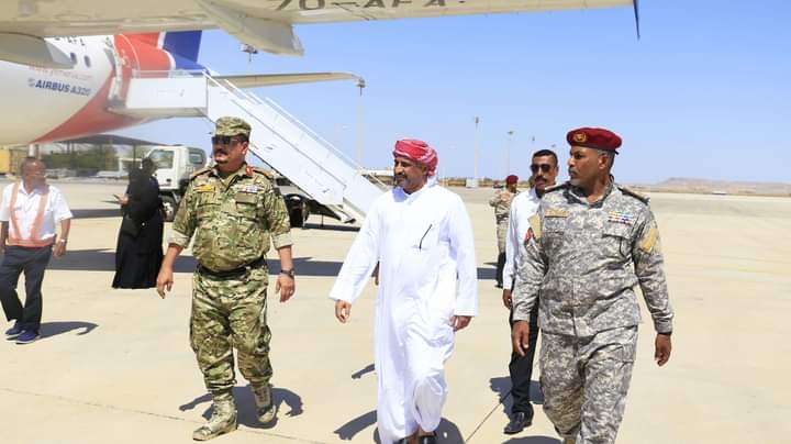 وصول قائد المنطقة العسكرية الثانية من المملكة العربية السعودية إلى المكلا عبر مطار الريان الدولي