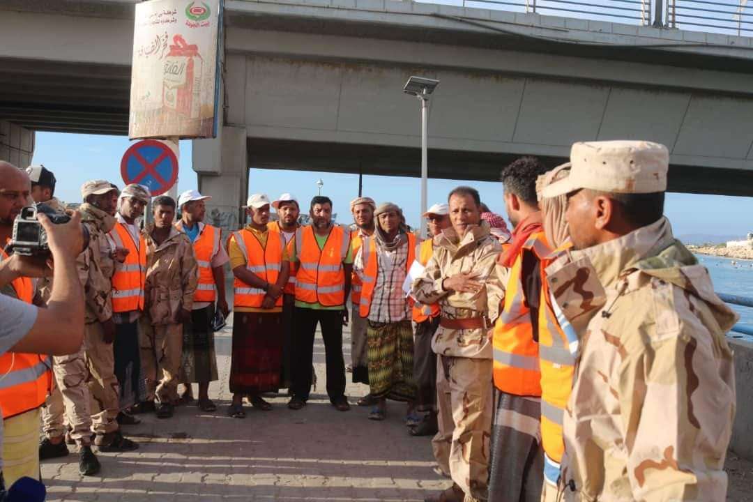 غواصي خفر السواحل وجمعية حضرموت ينفذون خطة انتشار طارئة في مدينة المكلا