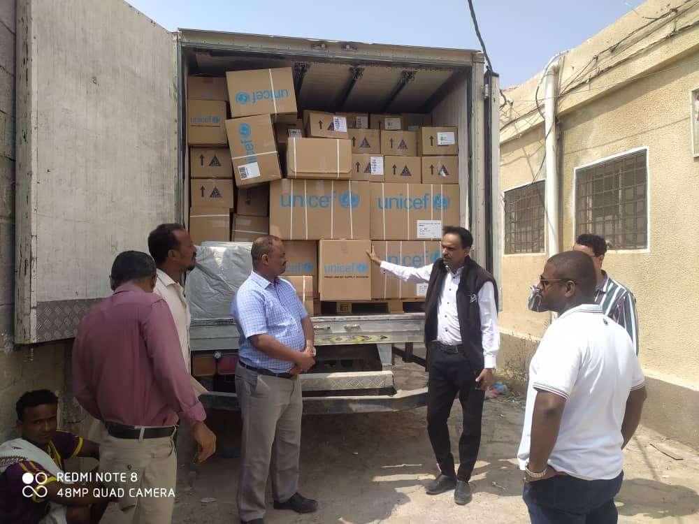 الجمحي يدشن توزيع أدوية و مستلزمات طبية للمرافق و الوحدات الصحية مقدمة من منظمة اليونيسيف