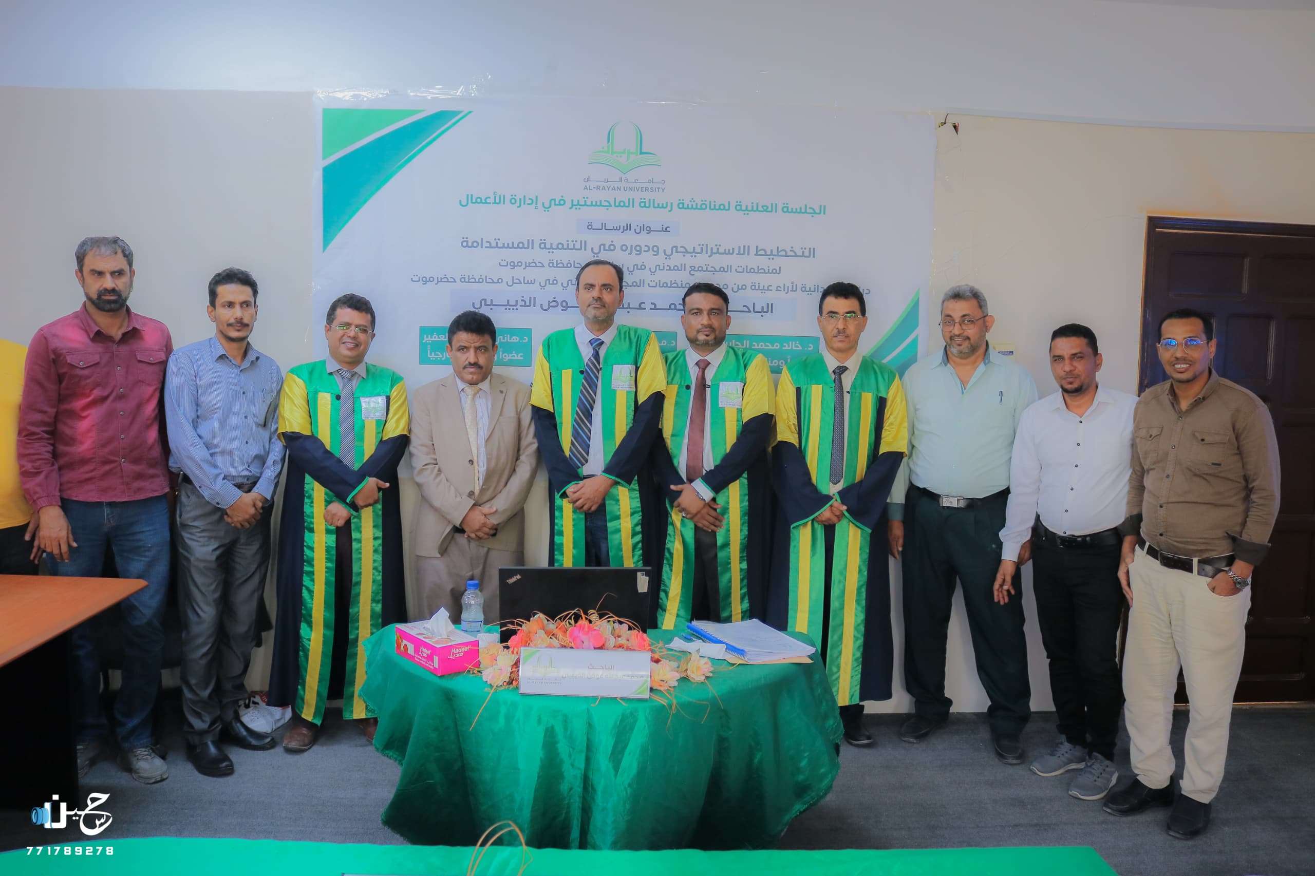 نوقشت صباح اليوم بجامعة الريان الجلسة العلنية لرسالة الماجستير للباحث محمد عبدالله الذييبي في إدارة الأعمال، والموسومة بالتخطيط الاستراتيجي ودوره في التنمية المستدامة لمنظمات المجتمع المدني في ساحل محافظة حضرموت، والتي تُمثّل دراسة ميدانية لآراء عيّنة من مديري منظمات المجتمع المدني في ساحل محافظة حضرموت. وتكوّنت لجنة المناقشة من الدكتور هاني سالمين بلعفير كعضو ومناقش خارجي والدكتور محسن محمد بن كليب كرئيسا ومشرفا علميا والدكتور خالد محمد الجابري كعضوا ومناقشا داخليا، والذين أبدوا رأيهم ومجموعة من الملاحظات التي تصوّب عمل الباحث وتعزز قيمة الرسالة وذلك بعد الاستماع للرسالة من قِبل الباحث. وفي الآخير وبعد تقديم المشرفين لمجموعة من الملاحظات والتوصيات الهادفة لتطوير مضمون الرساله،تم اعلان النتيجة النهائية لجلسة المناقشة والتي أُعلنت بإعطاء الباحث درجة الماجستير بإمتياز من جامعة الريان بالمكلا،وسط حضور ومشاركة وفرحة من قِبل أهالي وأصدقاء الباحث. في السياق ذاته هنأ مدير الصندوق الاجتماعي للتنمية فرع المكلا الدكتور عوض سالم لقصم وجميع منتسبي الفرع الباحث على نيله درجة الماجستير والذي يشغل وظيفة الضابط المجتمعي لبرنامج النقد مفابل العمل بفرع المكلا، متمنين له دوام التوفيق والنجاح في مشواره وتحصيله العلمي ومهامه العملية بالفرع.