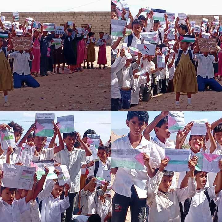 تحت إشراف مكتب تربية ميفعة شبوة" مدرسة الجريبة تعانق غزة وحناجر أطفالها تدعو لوقف الحرب "
