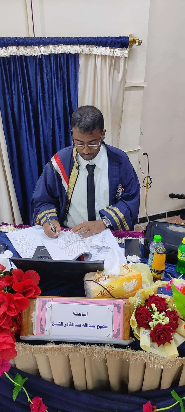 هنى الإعلامي محضار المعلم الأستاذ سميح عبدالله عبدالقادر الشيخ من أبناء مديرية الروضة محافظة شبوة وذالك لنيلة شهادة الماجستير بجامعة عدن في الموسومة بـ (التحليل المكاني للخدمات الصحية في محافظة شبوة "دراسة في جغرافية الخدمات ") ، وقد أُجِيزت بتقدير (امتياز)، وبهذه المناسبة العلمية اهنى الاخ سميح واسرته وآل عبدالوهاب عامة واتمنى له التوفيق في مهامه القادمة