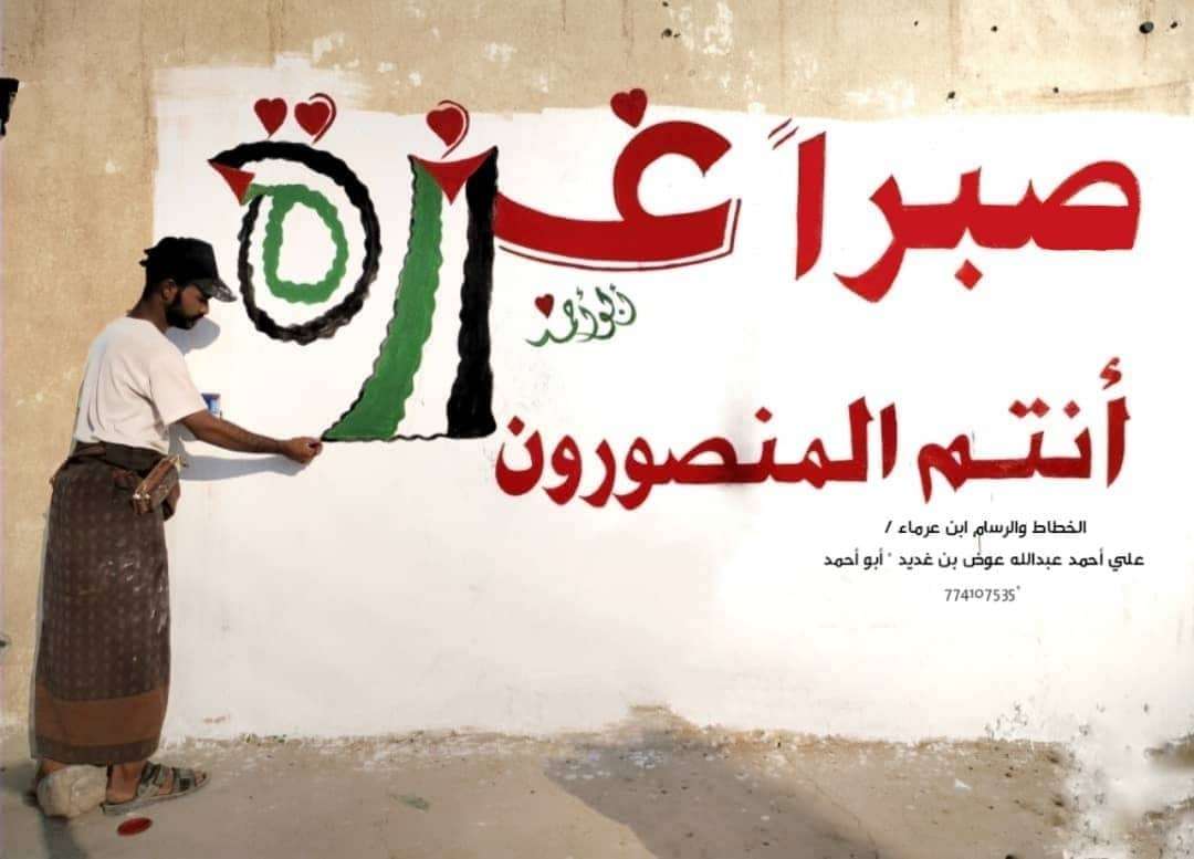 الخطاط والرسام علي بن غديد يبدع جداريه خاصة لـ غزه