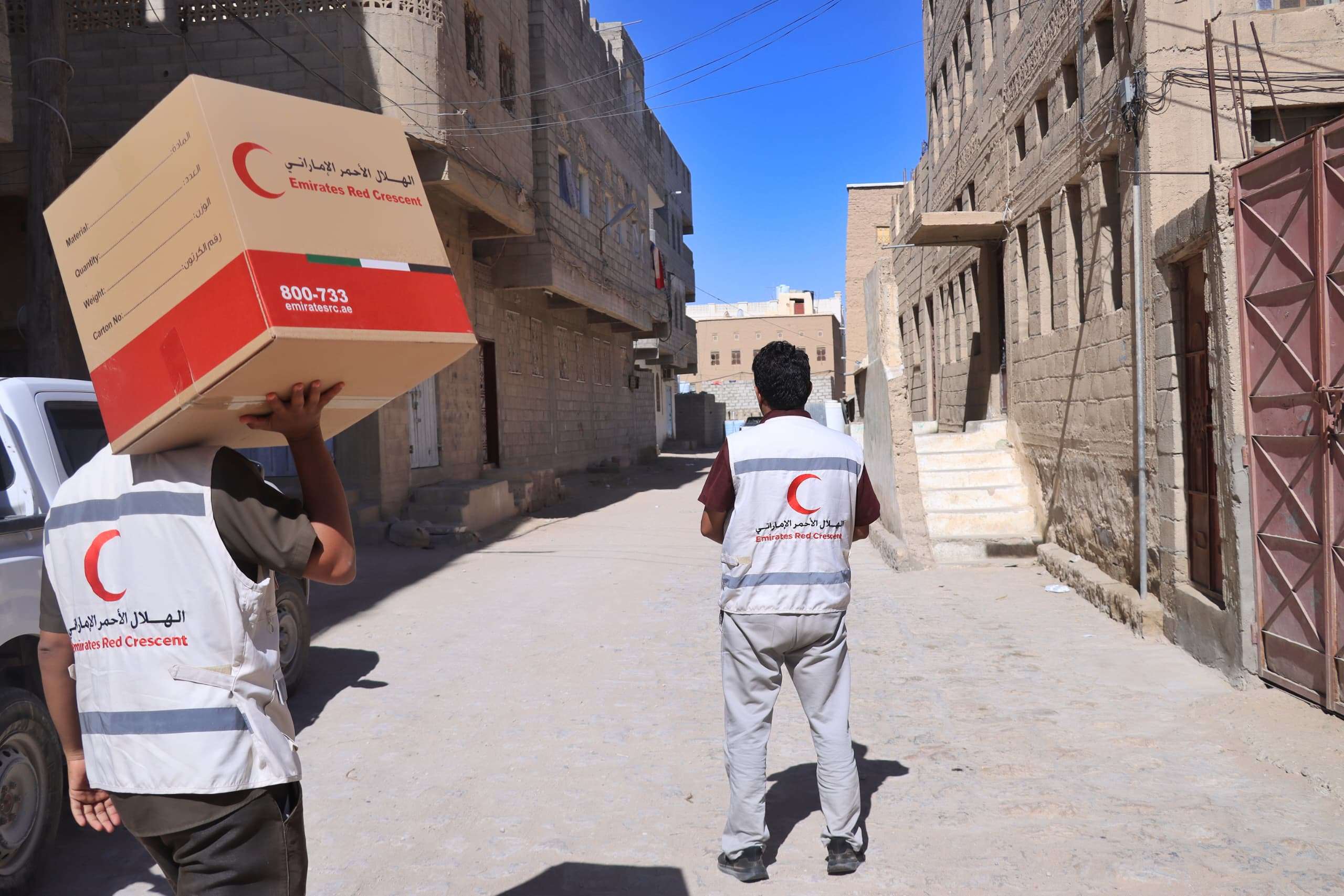 بحضور وكيل محافظة شبوة وبالتنسيق مع اللواء الثاني دفاع شبوة.. الهلال الاحمر الاماراتي يوزع مساعدات غذائية على الاسر الاشد فقراً في مديرية عتق
