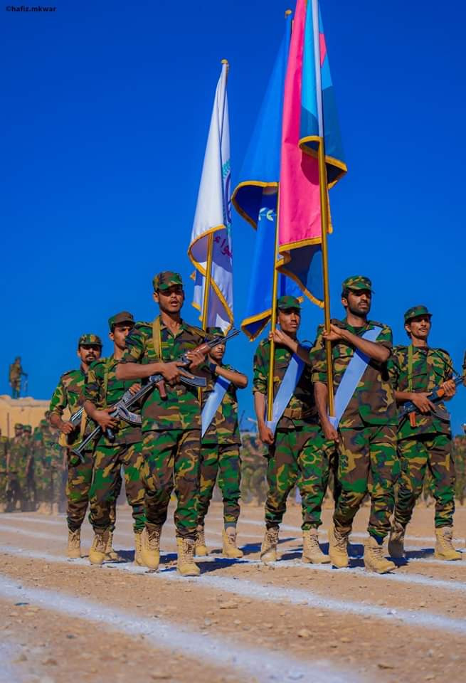 تزامنا مع الذكرى الثانية لتحرير مديريات بيحان من الاحتلال الحوثي الإيراني دشن اللواء الأول دفاع شبوة صباح اليوم الخميس العام التدريبي الجديد 2024 بعرض عسكري مهيب في في مقر قيادة اللواء. وحضر العرض العسكري عددا من القيادات العسكرية والأمنية يتقدمهم نائب قائد ألوية دفاع شبوة قائد اللواء الثاني دفاع العميد وجدي باعوم وقائد اللواء الأول دفاع شبوة العميد أحمد عوض بن الوزير.. وتخلل العرض العسكري استعراضا لمنتسبي اللواء اشتمل على نماذج من مهاراتهم القتالية والفنية وعرضا لأنواع من الأسلحة والآليات العسكرية في رسالة مهمة تؤكد جاهزية واستعداد اللواء لتنفيذ كافة المهام الأمنية والعسكرية المكلف بها في مختلف الأصعدة. العسكرية خلال العام 2024. وحيا نائب قائد ألوية الدفاع العميد وجدي باعوم في كلمته المشاركون في العرض العسكري، متقدما بالشكر والتقدير لقيادة اللواء الأول قيادة وضباط وصف ضباط وجنود على جهودهم الكبيرة خلال الفترة الماضية، متمنيا لهم النجاح خلال العام الجديد 2024. من جانبه ألقى العميد أحمد عوض بن الوزير قائد اللواء الأول كلمة في الحفل ترحم في مستهلها على الشهداء سائلا المولى -عز وجل- أن يتغمدهم بواسع رحمته وأن يسكنهم الفردوس الأعلى من الجنة، داعيا بالشفاء العاجل للجرحى. وتطرق قائد اللواء إلى المهام والانجازات الامنية التي حققها اللواء خلال الفترة الماضية وعملية البناء العسكري والتدريب والتاهيل التي شهدها اللواء، مثمنا جهود كافة منتسبي اللواء من ضباط وصف ضباط وأفراد اللواء التي تحققت بتضحياتهم وتفانيهم واخلاصهم، والذين بذلوا جهودا مضاعفة لتحقيق كل المهام الأمنية، مشددا على أهمية بذل المزيد من الجهود خلال العام التدريبي للعام الجديد وتنفيذ كافة المهام الملقاة على عاتقهم. واشاد العميد ابن الوزير بدور قيادة التحالف العربي على جهودها وفي مقدمتها دولة الإمارات العربية المتحدة ودعمها الكبير الذي تقدمه في إطار تدريب وتأهيل القوات المسلحة، معبرا عن الشكر والتقدير لقيادة السلطة المحلية بالمحافظة ممثلة بمحافظ المحافظة رئيس اللجنة الامنية الاخ عوض محمد بن الوزير. وأكد العميد احمد بن الوزير جهوزية واستعداد اللواء الأول دفاع شبوة إلى جانب إخوانه من منتسبي الوية قوات دفاع شبوة والوحدات الأمنية والعسكرية بالمحافظة للقيام بالمهام المنوطة بهم في الدفاع عن شبوة وأمنها واستقرارها وتنفيذ توجيهات القيادة في مختلف الظروف آملين أن نكون في ذلك عند حسن ظن أهلنا وقيادتنا. مختتما كلمته بتوجيه الشكر والتقدير لمنتسبي اللواء الأول من ضباط وصف وأفراد على ما أسهموا فيه من مهام بطولية وقدموا تضحيات جليلة وكانوا عند حسن ظن القيادة بهم من حيث الالتزام والانضباط وتنفيذ المهام الموكلة لهم بكل عزيمة واقتدار، داعيا الجميع إلى مزيد من الثبات على الواجبات العسكرية والعزيمة في تأدية المهام. شارك في فعالية تدشين العام التدريبي العقيد الركن محمد طالب الطوسلي قائد القوات الخاصة والمقدم علي الدحبول قائد شرطة الدوريات وامن الطرق وعدد من القيادات من مختلف الوحدات الامنية والعسكرية.
