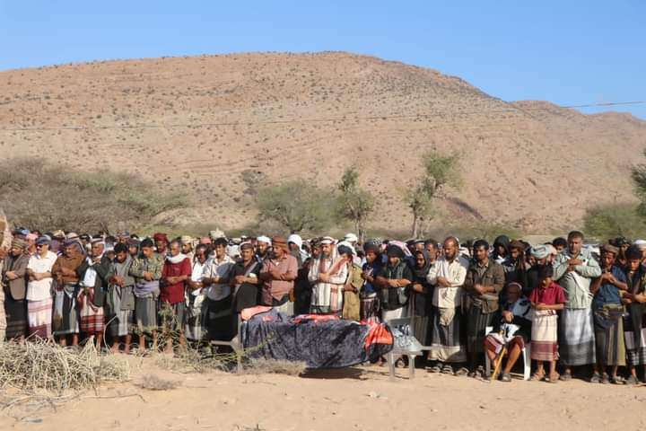 وكلاء محافظة شبوة يتقدمون جموع مشيعي الشاعر الشعبي الكبير عبدربه القميشي بموكب جنائزي بمديرية حبان.