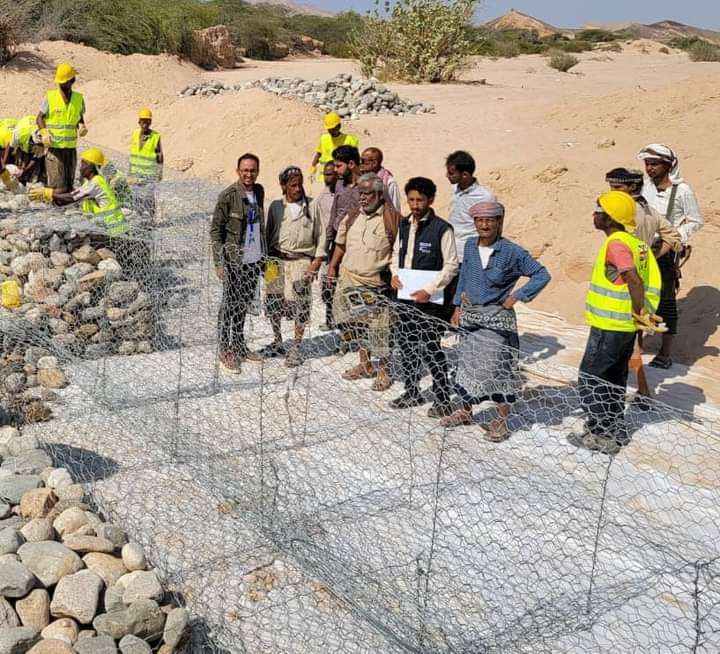 قام صباح اليوم مدير عام مديرية ميفعة بمحافظة شبوة الاستاذ محمد سعيد الخرس بافقير" بزيارة لتفقد سير الأعمال في مشروع إنشاء دفاعات الحماية الزراعية بمنطقة جول الشيخ بمديرية ميفعة، والذي تنفذه جمعية رعاية الأسرة، وبتكلفة مالية تقدر باكثر من "30" الف دولار امريكي. وخلال الزيارة، أشاد المدير العام بافقير" بمستوى تنفيذ الأعمال في مشروع الدفاعات التي جاءت تنفيذا لتوجيهات محافظ المحافظة الشيخ عوض محمد ابن الوزير" والتي ستعمل باذن الله على حماية الأراضي الزراعية للمواطنين، وكذلك بئر مشروع مياه المنطقة من جرف السيول في المستقبل. وأفاد بافقير" بأن جمعية رعاية الأسرة تدخلت في المديرية بمشاريع في قطاع الزراعة، والمياه، ومشاريع الحماية المجتمعية كالدعم النقدي اللامشروط للأسر النازحة والأشد فقرآ، مؤكدآ" بأن هذه المشاريع تحظى بتقدير كل أبناء مديرية ميفعة والسلطة المحلية بالمديرية، التي ستعمل على تذليل اي صعوبات تعترض تنفيذ أعمالهم التي يعود نفعها على أبناء المديرية. رافق المدير العام خلال زيارته" المهندس علي احمد السليماني منسق جمعية رعاية الأسرة بالمديرية، والمهندس محمد جمال من المختصين بجمعية رعاية الأسرة .