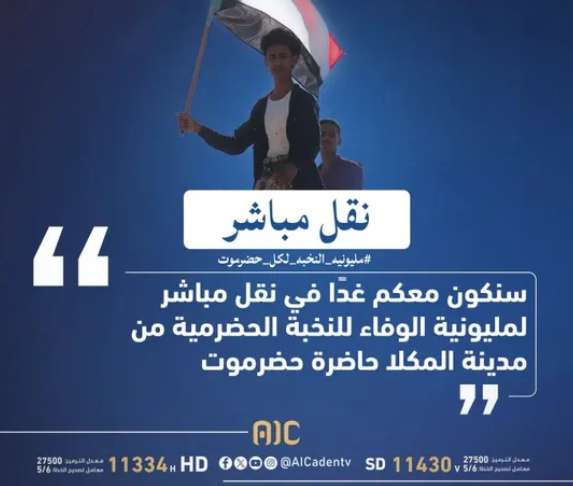 عدن المستقلة: تغطية مباشرة لمليونية النخبة الحضرمية عصر اليوم السبت