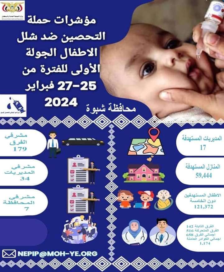 مدير عام الصحة شبوة يؤكد الجاهزية لتنفيذ حملة التحصين ضد شلل الأطفال غدا الأحد.