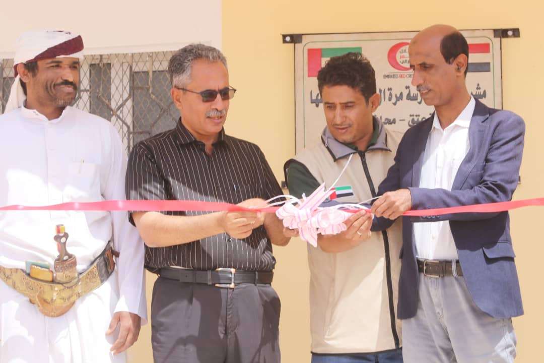 بتمويل من "الهلال الأحمر الإماراتي" مدير تربية شبوة ومدير عام عتق يفتتحان مشروع بناء "مدرسة مرة آل زيد" بمديرية عتق