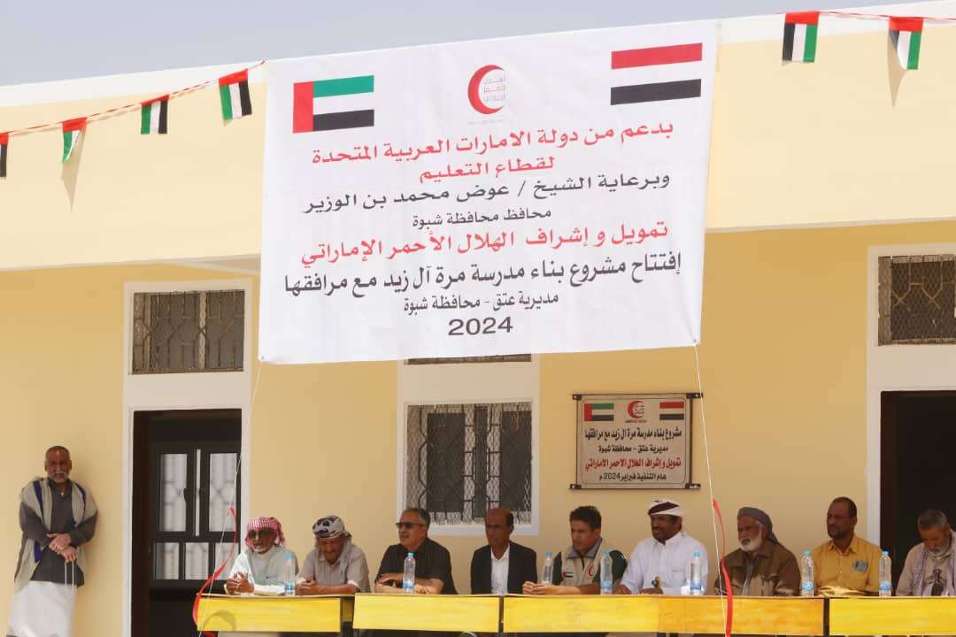 بدعم من دولة الإمارات العربية المتحدة، وضمن جهودها في دعم قطاع التعليم دشنت هيئة الهلال الأحمر الإماراتي، اليوم تاريخ 2024/3/2م إفتتاح مشروع بناء "مدرسة مُرة- آل زيد " ومناطق البدو الرحل الواقعة على اطراف مديرية عتق عاصمة محافظة شبوة. وأثناء الإفتتاح أشاد مدير عام مكتب التربية والتعليم بالمحافظة، الأستاذ/ سالم محمد حنش ، بالجهود الخيرية والإنسانية الكبيرة التي تقدمها دولة الإمارات العربية المتحدة ودعمها السخي لإشقائها في محافظة شبوة، معبرا عن تقدير وإمتنان إدارة مكتب التربية والتعليم وكافة العاملين في القطاع التربوي و التعليمي للدعم المتواصل الذي يقدمه الأشقاء في دولة الإمارات وذراعها الإنسانية في اليمن "هيئة الهلال الأحمر الإماراتي" بمحافظة شبوة ، موضحاً بإن هذا المشروع سيستفيد منه مايزيد عن 120 طالباً وطالبةً من جميع مناطق البدو الرحل ، وأكد حنش بإن إدارة مكتب التربية والتعليم بالمحافظة ستبذل اقصى جهودها في تذليل كافة الصعوبات من أجل تشغيل هذا المشروع التربوي وستقدم كافة الإمكانات المتاحة لديها ومنها توفير الكادر التربوي والكتاب المدرسي ومتابعة وتقييم العملية التعليمية في هذا المشروع. وفي السياق نفسه ..تحدث مدير عام مديرية عتق الأستاذ / عبدالله صالح الخليفي معبراً عن سعادته العارمة بافتتاح هذا المشروع وذلك لما سيترتب عليه من أثر إيجابي على أهالي منطقة مُرة آل زيد والمناطق المجاورة لها من البدو الرحل ، لاسيما وأن ابناء المناطق الصحرواية والبدو الرحل يعانون دائما من ظاهرة الإنقطاع عن التعليم والعزوف عنه في سن مبكر ، والسبب في ذلك يعود الى عدم وجود بيئة تعليمية مناسبة لمواصلة التعليم. ومن جهته .. أوضح الأستاذ /ماجد بن سريع مدير فريق الهلال الأحمر الإماراتي بشبوة أن هذا المشروع يأتي ضمن الدعم الإماراتي لقطاع التعليم والذي تحرص هيئة الهلال الأحمر الإماراتي من خلاله على دعم البنية التحتية لقطاع التعليم ، مشيراً الى أن المشروع يتكون من " بناء ثلاثة فصول دراسية مع مرافقها " بالاضافة الى منظومة تعمل بالطاقة الشمسية ، واوضح أن هذا المشروع سيخفف الكثير من الأعباء والصعوبات على الطلاب من أبناء البدو الرحل والذين ضلوا يعانون طيلة السنوات الماضية وهم يتلقون العلم في خيام مهترئة لا تقيهم حرارة الصيف ولا برد الشتاء .