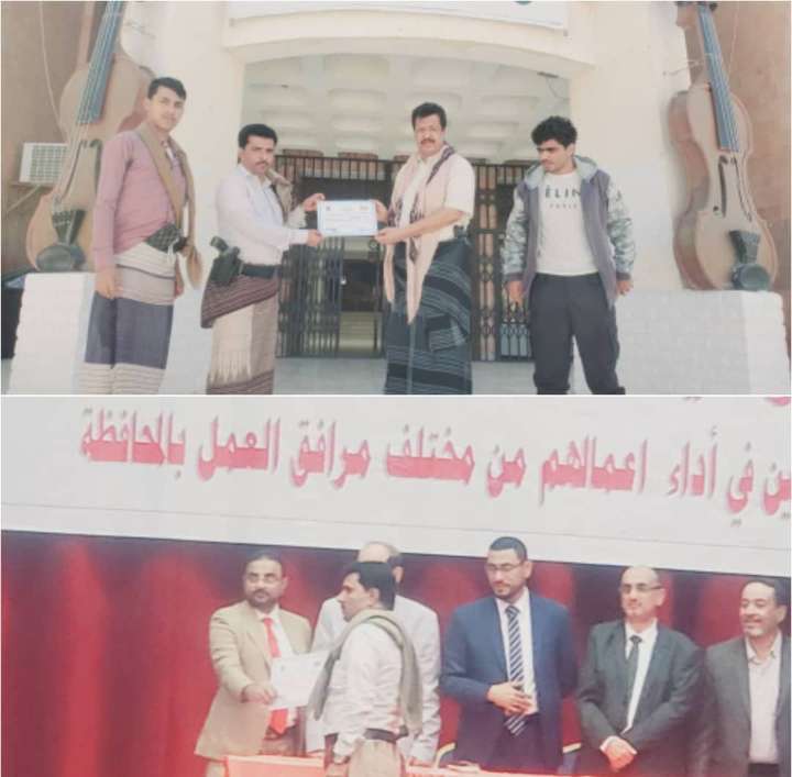 مدير عام مديرية رضوم محافظة شبوة الأستاذ هادي سعيد الخرماء بهنئ أخيه مدير مكتب الصناعة والتجارةبالمديرية الأستاذ قاسم سعيد سالم لهيف. والجدير ذكره أن النقابة العمالية فرع محافظة شبوة كرمت صباح اليوم الاثنين في المركز الثقافي بمحافظة شبوة نخبة من عمال محافظة شبوة وذلك بمناسبة يوم العمال العالمي الأول من مايو. والذي ينظمه الاتحاد العام لنقابات عمال محافظة شبوة وبرعاية كريمة من محافظ محافظة شبوة الشيخ عوض محمد بن الوزير. وفي حفل التكريم الذي حضره عدد من قيادات السلطة المحلية بالمحافظة ورئيس جامعة شبوة وقيادة إتحاد نقابة عمال محافظة شبوة ومدراء عموم المكاتب التنفيذية وذلك التكريم للعمال نظير تميزهم ودورهم الريادي في المهام التي بذلوها وتقديراً لجهودهم المبذولة في خدمة المواطن ومن جانبه، شكر مدير الصناعة والتجارة مديرية رضوم لهيف أخيه المدير العام الخرماء، وذلك لتذليل الصعاب والمهام التي قمنا بها لخدمة الحركة التجارية ومراقبة السلع الإستهلاكية وتحديد المواصفات والمقاييس وكل النشاطات التي قام بها مكتبنا. وإن هذا التكريم أهديه إلى أخي هادي سعيد وأبناء رضوم جميعًا، متمنيًا للجميع التوفيق والنجاح.