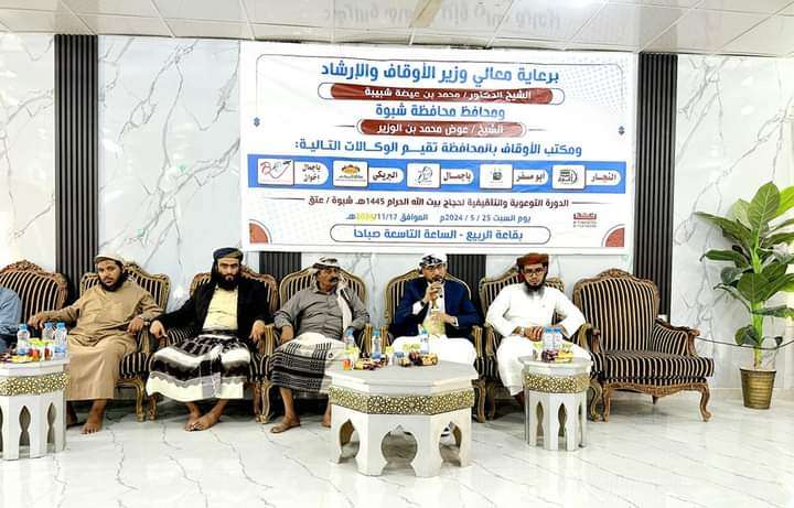 برعاية وزير الأوقاف والمحافظ بن الوزير. تدشين الدورة التطبيقية لحجاج محافظة شبوة.