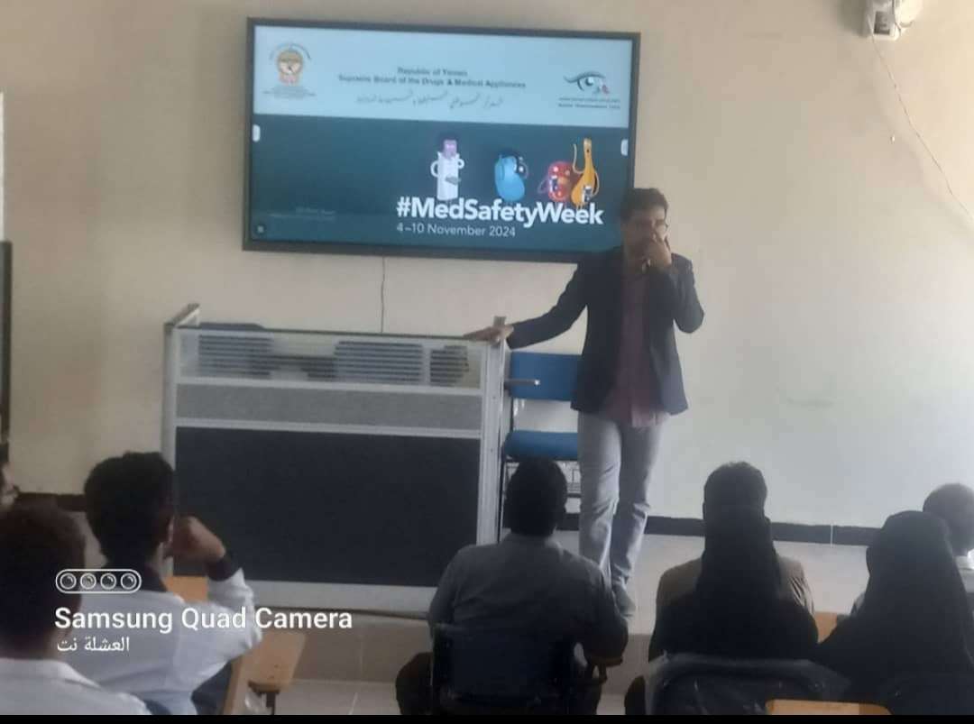 نظمت الهيئة العليا للأدوية والمستلزمات الطبية وبالتعاون مع المركز الوطني للتيقظ والسلامة الدوائية عدن والتنسيق مع كلية الطب والعلوم الصحية بجامعة شبوة اليوم الخميس، ندوة توعوية في السلامة الدوائية. وفي الندوة التي احتضنتها القاعة الكبرى في كلية الطب، أكد مندوب الهيئة العليا للادوية والمستلزمات الطبية في شبوة الدكتور مهدي العمري على أهمية الندوة لتعزيز الوعي في تفادي الأخطاء والممارسات الدوائية غير المامونة والحد من الأضرار المتصلة بالأدوية واستخدامها ، مشددا على تمكين المرضى والأسر من المشاركة في الإستخدام الأمن للدواء، داعيا إلى ضرورة تكاتف كافة الجهود من أجل حماية الإنسان من خطر الاعراض الجانبيه للادوية وأوضح العمري ان الهيئة العليا للادوية والمستلزمات الطبية ممثله بالمركز الوطني للتيقظ والسلامة الدوائية أعلنت مشاركتها في أسبوع التيقظ والسلامة الدوائية الذي ينظمة مركز اوبسالا العالمي التابع لمنظمة الصحة العالمية للفترة من الرابع إلى العاشر من نوفمبر الجاري ويشمل العديد من الفعاليات. وتخلل الندوة التي حضرها العديد من الأطباء وطلاب كلية الطب والعلوم الصحية بجامعة شبوة محاضرة قصيرة القاها الدكتور العمري حول أهمية سرعة الإبلاغ عن المضاعفات الجانبية للأدوية كون سرعة الإبلاغ تعجل من عملية اتخاذ القرار المناسب معها