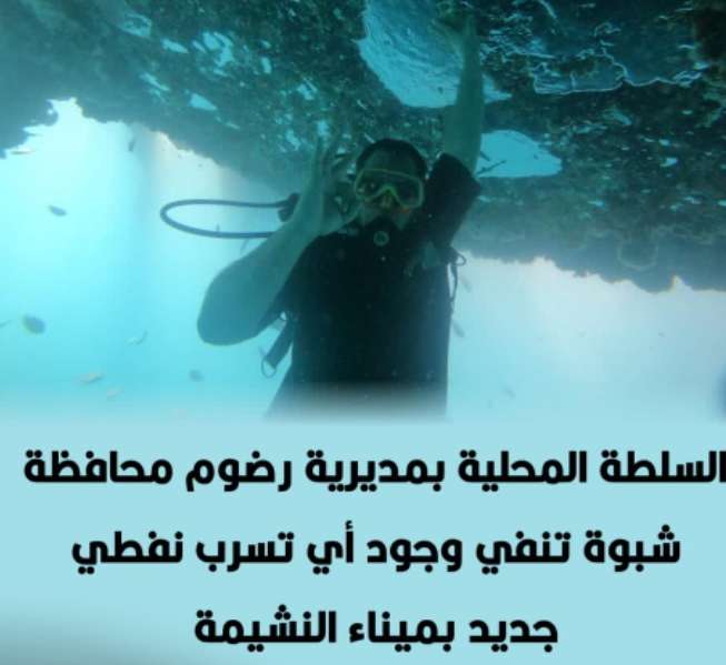السلطة المحلية بمديرية رضوم تنفي وجود أي تسرب نفطي جديد بميناء النشيمة.