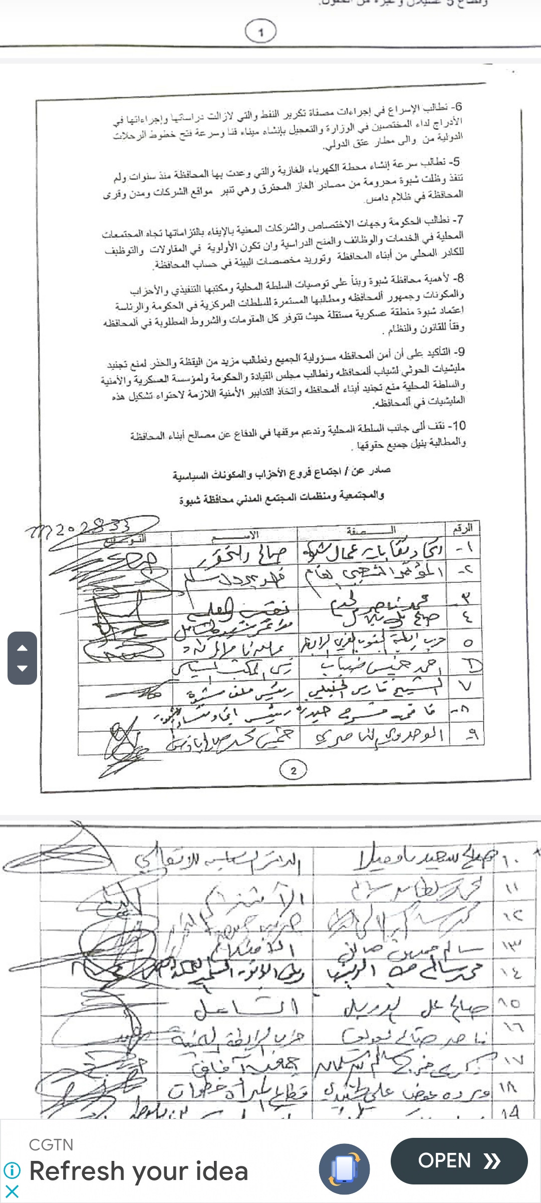 عقد صباح اليوم اجتماع استثنائي للأحزاب والتنظيمات السياسية والمؤسسات ومكونات المجتمع المدني بمحافظة شبوة برعاية عوض محمد ابن الوزير، محافظ محافظة شبوة، لمناقشة أهم المستجدات على الساحة المحلية لمحافظة شبوة. حيث اتفق الحاضرون على توحيد الصف الشبواني لكل لتحقيق تطلعات وطموحات المحافظة وأبنائها من حصتها في الثروة النفطية في كل الحقول المتعددة في التراب الوطني للمحافظة وجميع مطالب واستحقاقات ومتطلبات كل أبناء المحافظة وإليكم البيان : بسم الله الرحمن الرحيم بيان صادر عن الأحزاب والمكونات السياسية والمجتمعية ومنظمات المجتمع المدني محافظة شبوة في ظل الحراك المجتمعي الذي تشهده محافظة شبوة بشأن المطالبة الجماهيرية بوضع حد لما تعانيه محافظة شبوة من إقصاء لتمثيلها التمثيل المستحق لحجمها السكاني وموقعها الجغرافي وثروتها في مواقع القرار على المستوى السياسي والحكومي، واستمرار إنتاج الماضي الذي عانت منه محافظة شبوة في جميع المراحل السياسية منذ العام 1967م حتى اليوم من تجاوزات مركزية تضر بمصالحها المحلية والمصلحة العامة للوطن بشكل عام، ولكون فروع الأحزاب والمكونات السياسية والمجتمعية ومنظمات المجتمع المدني جزءًا من النسيج الاجتماعي في المحافظة، تداعت فروع الأحزاب والمكونات السياسية والمجتمعية في محافظة شبوة للقاء تشاوري اليوم الأربعاء الموافق 29 / يناير / 2025م، وذلك لتوحيد موقفها من عدم تجاوب المركز مع مطالب أبناء المحافظة في نيل حقوقها على مختلف المستويات السياسية والوظيفية والخدمية. وفي هذا السياق، وبعد تدارس وضع الشراكة الوطنية التي يتساوى فيها الجميع في نيل الحقوق والتمثيل العادل، وقتًا لحجم وجغرافيا المحافظة والمساهمة في موارد الوطن، على أن يكون تمثيل المحافظة بما يحفظ الحقوق ويلم الشمل بعيدًا عن الإقصاء والتهميش والوصاية التي عانت وتعاني منها محافظة شبوة في كل المراحل السابقة، حيث تعاقبت السلطات المركزية على مغازلة محافظة شبوة بالمديح والثناء والإرث التاريخي إعلاميًا، وحرمانها من حقوقها ومنافعها وموقعها في الشراكة الوطنية في الواقع العملي. وبناءً على ما سبق، فإن الأحزاب والمكونات تقر وتطالب بالآتي: 1. تمثيل محافظة شبوة في الحكومة وهيئاتها ومؤسساتها المدنية والعسكرية والأمنية والدبلوماسية وكافة أجهزتها التمثيل العادل، وترفض استمرار الإقصاء والتهميش والوصاية. 2. عدم تجاوز محافظة شبوة في المشاريع السيادية المقامة على أراضي المحافظة، وفي مقدمتها النفط والغاز وغيرها من الثروات الطبيعية. 3. ترحب بالشركات النفطية العالمية للعمل في حقول المحافظة، ونقف إلى جانب السلطة والأمن والمجتمع في تسهيل وتأمين نشاط الشركات العاملة في مجال النفط والغاز، وتؤكد أن الوضع الأمني والمجتمعي مهيأ للعمل وتشغيل كافة حقول النفط في المحافظة، ونمد أيدينا للتعاون مع الشركات النفطية بما يحفظ مصلحة الجميع -4- الرفض التام لممارسة أسلوب النظام السابق في تمرير أو المصادقة أو التنازل أو التمديد للاتفاقيات النفطية والغازية والطبيعية أو التلاعب بمواقع الامتياز والقطاعات النفطية دون إشراك محافظة شبوة في ذلك. نطالب مجلس القيادة والحكومة ومجلس النواب والشورى بالإسراع في إصدار قرار إنشاء شركة بترو شبوة أسوة بالمحافظات المجاورة لمحافظة شبوة، على أن تحل بترو شبوة محل الشركات التي انتهت اتفاقياتها أو استغنت عن تشغيل الحقول النفطية، وخاصة قطاع العقلة 2 وقطاع 5 عسيلان وغيره من الحقول تطالب الإسراع في إجراءات مصفاة تكرير النفط والتي لا تزال دراستها وإجراءاتها في الأدراج لدى المختصين في الوزارة، والتعجيل بإنشاء ميناء قنا وسرعة فتح خطوط الرحلات الدولية من وإلى مطار عتق الدولي. نطالب بسرعة إنشاء محطة الكهرباء الغازية والتي وعدت بها المحافظة منذ سنوات، ولا تزال المحافظة في ظلام دامس. تنفذ، وظلت شبوة محرومة من مصادر الغاز المحترق، وهي تنير مواقع الشركات ومدن وقرى. نطالب الحكومة و