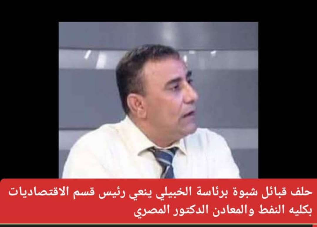 حلف قبائل شبوة برئاسة الخبيلي ينعي رئيس قسم الاقتصاديات بكليه النفط والمعادن الدكتور المصري