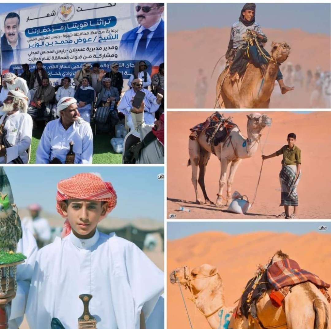 اختتمت مساء اليوم السبت بعسيلان شبوة وبرعاية محافظها الشيخ عوض ابن الوزير فعاليات مهرجان التراث والفروسية و الهجن ، والذي نظمته جميعة التراث بعسيلان لمدة ثلاثة ايام تحت شعار (تراثنا هويتنا ، رمز حضارتنا )، بمشاركة 85 من الفرسان ، و الهجانة من محافظات الحديدة ومأرب و شبوة . وفي حفل الاختتام نقل الامين العام للمجلس المحلي بمديرية عسيلان احمد كردة تحيات وتهاني محافظ المحافظة بمناسبة نجاح المهرجان ، معربا عن اعتزازه باحتضان صحراء عسيلان له ، لافتا باصالة هذا المورث العربي المشترك للامة العربية من المحيط الى خليج ، منوها بدوره في صياغة هويتها الحضارية الجامعة ، مثمنا عاليا تمسكهم بها ، و الحفاظ على قيمها ، و احياء موروثها التاريخي العريق في حياة الاجيال . والقيت كلمة عن مشايخ و شخصيات عسيلان رحب فيها الشيخ خالد بن حصيان بالحاضرين و المشاركين في هذه التظاهرة التراثية الاصيلة ، مؤكدا اعادتها للامجاد التاريخية لعسيلان مهد الحضارات اليمنية القديمة و العريقة ، لافتا بمآثر الحضارة القتبانية الخالدة فيها . وكان رئيس اللجنة التحضيرية للمهرجان الشيخ محسن جلال قد اعطاء خلفيه عن هذا المهرجان التراثي والثقافي السنوي ، موضحا دخول 31 خيلا لمضمار سباقه من بين 47 خيلا ، و تأهيل 54 من الابل لدخوله من بين 170 منهن . منوها بمشاركة محافظات الحديدة ومأرب و شبوة في المهرجان القاء كلمة العميد علي احمد الجبواني عضوا مجلس هئية رئاسية المجلس الانتقالي الجنوبي وفي نهاية المهرجان القيت قصيدتين لشاعرين عبدالله عزام ، و عبدالباري السحاقي استذكرت بعذوبة الشعر خواطر جياشة مكانة هذه المناسبات في حياة و تاريخ العرب ، كما جرى تكريم الفرسان والهجانة الفائزين بالسباق ، و الجهات والشخصيات التي ساهمت في انجاح المهرجان . حضر الحفل مدير امن الشركات النفطية العميد علوي حصيان والشيخ عقيل باحميد وعدد من شخصيات الاجتماعية .