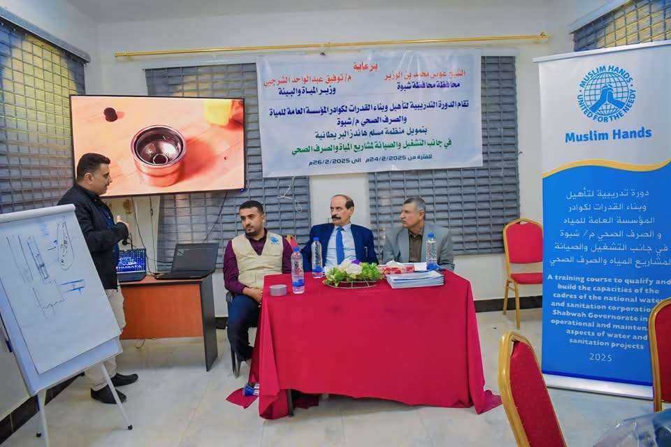دشن وكيل المحافظة، أحمد صالح الدغاري، الدورة التدريبية لتأهيل وبناء القدرات لكوادر المؤسسة العامة للمياه والصرف الصحي، والتي تركز على جوانب التشغيل والصيانة لمشاريع المياه والصرف الصحي. وتستمر الدورة التدريبية التي تقام برعاية وزير المياه والبيئة، المهندس توفيق عبدالواحد الشرجبي، ومحافظ محافظة شبوة، عوض محمد بن الوزير، خلال الفترة من 24 إلى 26 من الشهر الجاري، بتمويل من منظمة مسلم هاندز البريطانية. وخلال التدشين، أكد الوكيل الدغاري، على دعم السلطة المحلية المتواصل بقيادة المحافظ بن الوزير لتطوير قدرات كوادر المؤسسات والهيئات والمكاتب الحكومية، مشيراً إلى أهمية هذه الدورة في تعزيز الكفاءات المحلية وتطوير مهارات العاملين في قطاع المياه والصرف الصحي. كما لفت الوكيل الدغاري، إلى أن هذه الجهود تأتي في إطار رؤية السلطة المحلية بقيادة المحافظ بن الوزير، لتحسين خدمات المياه والصرف الصحي وضمان استدامتها، بما يسهم في تحسين جودة الحياة للمواطنين. من جانبه، أوضح مدير عام المؤسسة العامة للمياه والصرف الصحي بالمحافظة، محمد أحمد السليماني، أن هذه الدورة تمثل خطوة هامة نحو تعزيز قدرات الكوادر الفنية والإدارية. وأشار السليماني، أن التدريب سيتناول أحدث الأساليب والتقنيات في مجال التشغيل والصيانة، مما سيسهم في رفع كفاءة الأداء وتحقيق الأهداف المنشودة في هذا القطاع الحيوي. يُذكر أن هذه المبادرة تأتي في وقت تشهد فيه المحافظة جهوداً متزايدة لتطوير البنية التحتية وتحسين الخدمات الأساسية، والذي يعكس التزام السلطة المحلية بتلبية احتياجات المواطنين وتعزيز التنمية المستدامة في المحافظة.