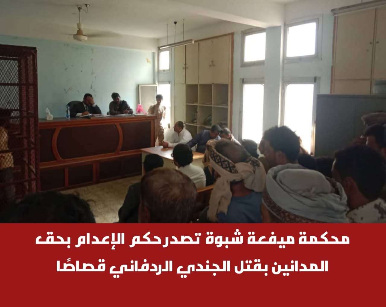 محكمة ميفعة شبوة تصدر حكم الإعدام بحق المدانين بقتل الجندي الردفاني قصاصًا