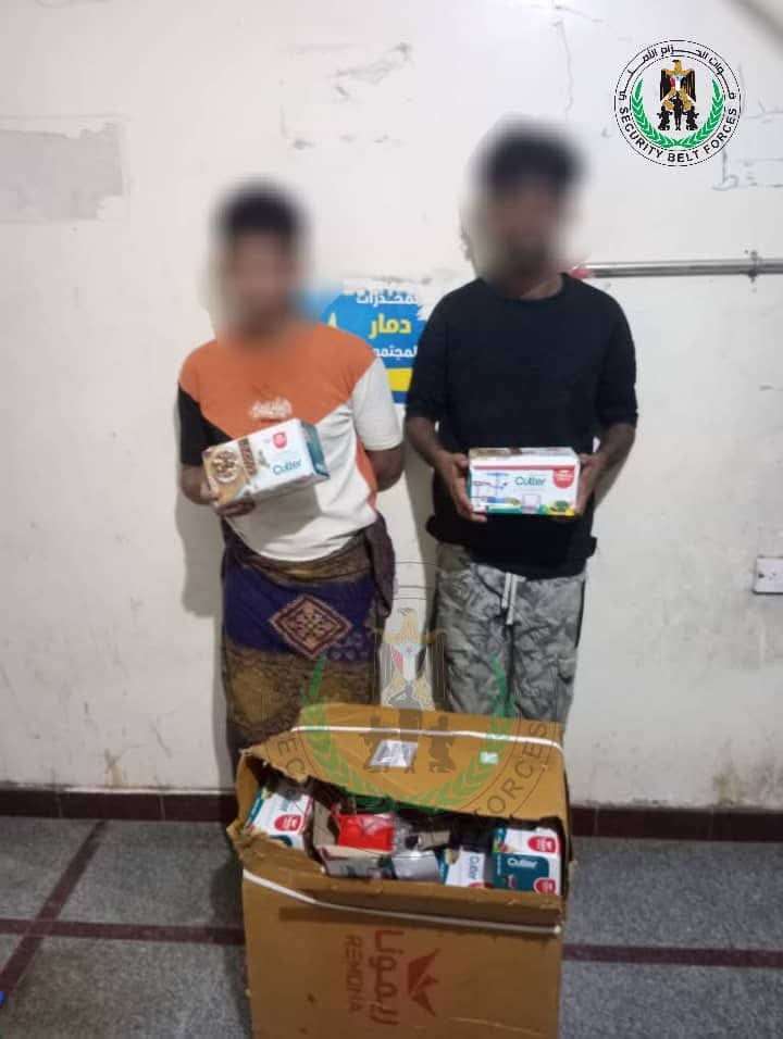 الحزام الامني يضبط شخصين بتهمة سرقة بضائع من على متن شاحنات نقل